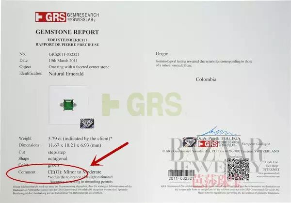 GRS 證書是目前市場上流通最廣的國際權威彩寶證書。它對於寶石是否經過熱處理以及處理方式的詳細介紹位於 Comment 這一項之中,在查看證書時一定要重點觀察這個部分。