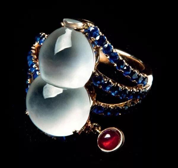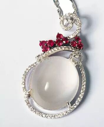 ▼冰種翡翠與粉色藍寶石吊膽搭配K紅會顯得溫潤柔和