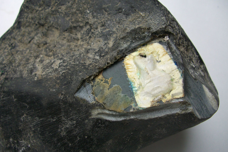 七.整個原石外表塗上如壢青之類黑色液體以掩飾接口。