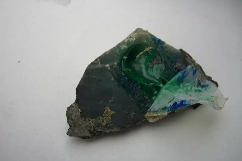底子乾了些,除了那條誘人的色根,這塊石頭一無是處,有了這條色根,這塊石頭,烏鴉變鳳凰了,還是隻金鳳凰!有種有水的色,實屬難得,色根蜿蜒自然,水頭十足.寧買一條線,不買一大片.這個就是一條線.在色貨身價百倍的現在,有這麼一片濃綠出現在面前的時候,頓然如同一個小型的富金礦出現,如果....顏色下去...若果龍過底....這塊石頭牛逼了!但是被垮了就是傾家蕩產!
